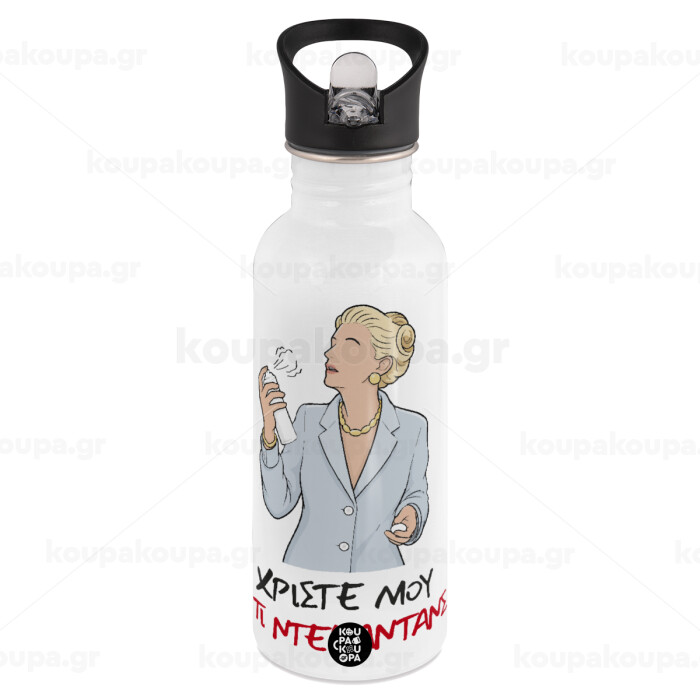 Tι ντεκαντάνς!, White water bottle with straw, stainless steel 600ml