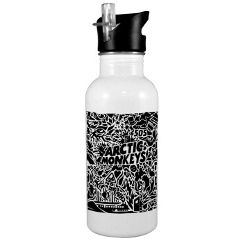 Arctic Monkeys, White water bottle with straw, stainless steel 600ml