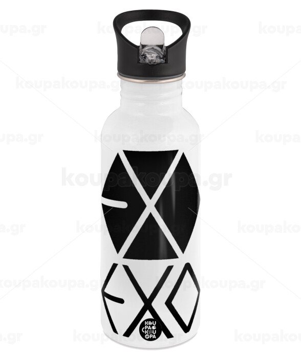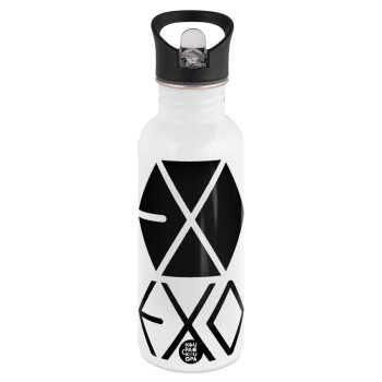 EXO Band korea, White water bottle with straw, stainless steel 600ml
