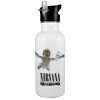 Nirvana nevermind, White water bottle with straw, stainless steel 600ml