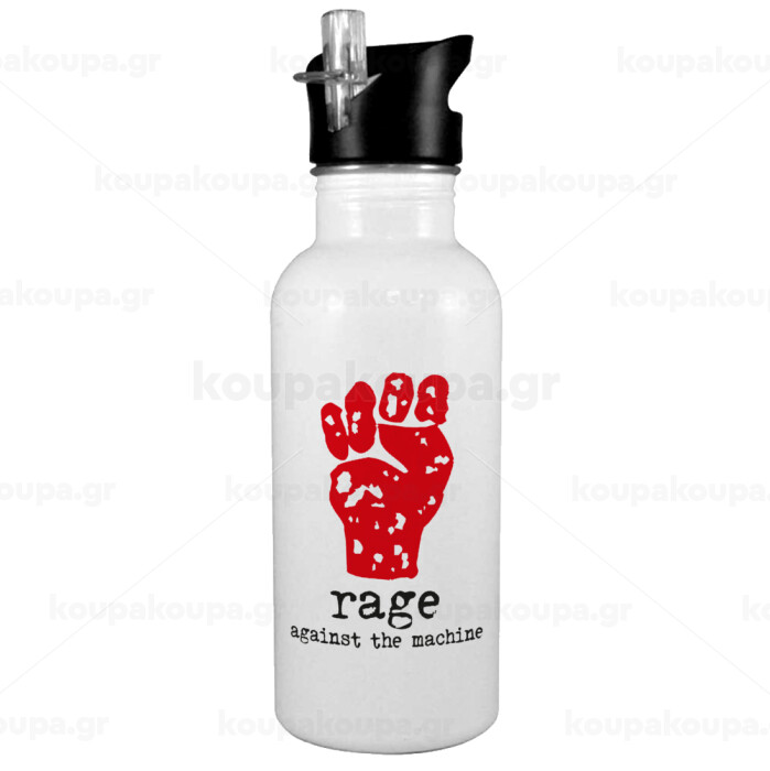 Rage against the machine, White water bottle with straw, stainless steel 600ml