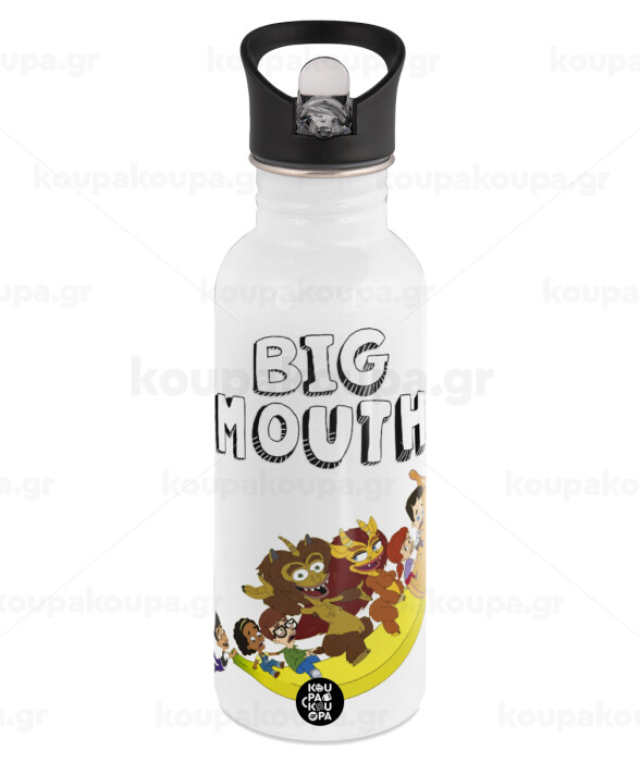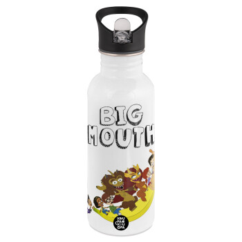 Big mouth, White water bottle with straw, stainless steel 600ml
