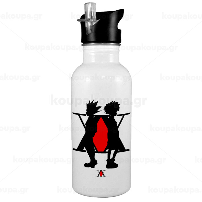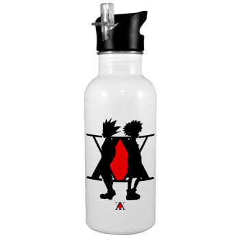 hunter x hunter, White water bottle with straw, stainless steel 600ml