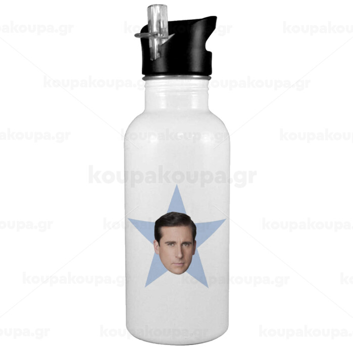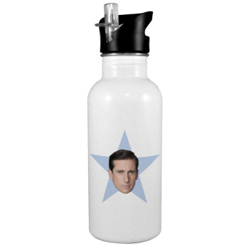 michael the office star, White water bottle with straw, stainless steel 600ml