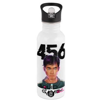 Squid game 456 Gi-Hun, White water bottle with straw, stainless steel 600ml