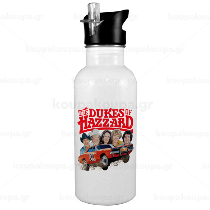 The Dukes of Hazzard, White water bottle with straw, stainless steel 600ml