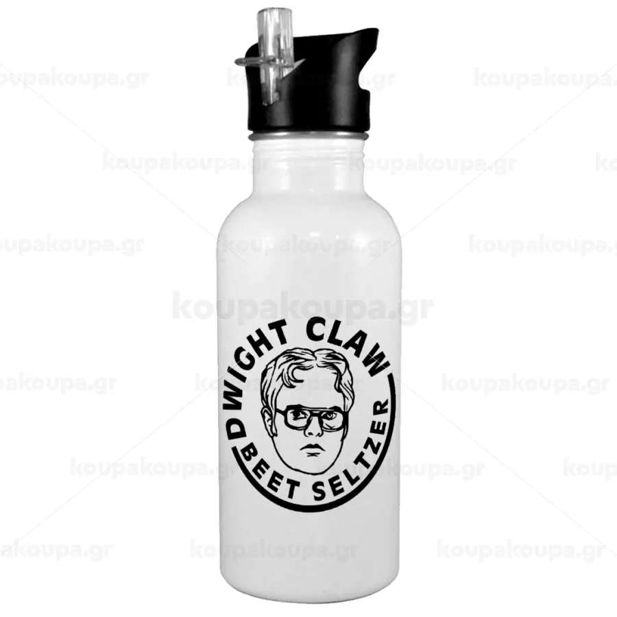 The office Dwight Claw (beet seltzer), White water bottle with straw, stainless steel 600ml