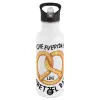 The office, Live every day like pretzel day, White water bottle with straw, stainless steel 600ml