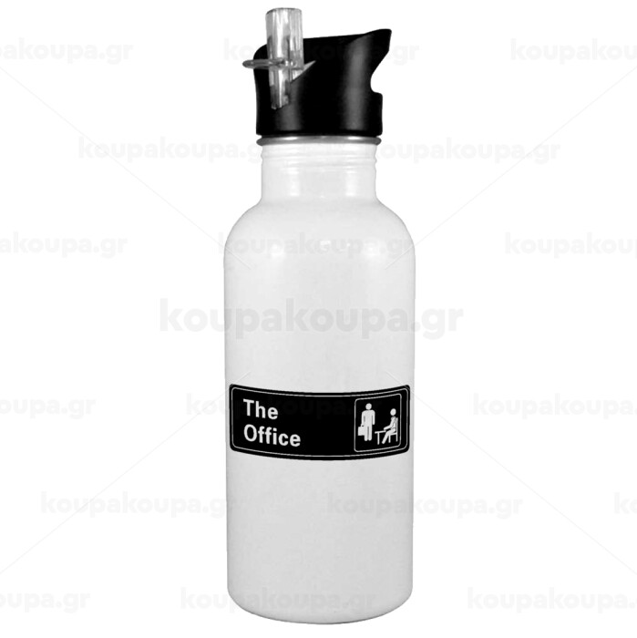 The office, White water bottle with straw, stainless steel 600ml