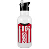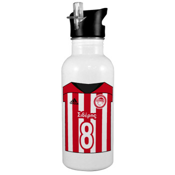 Ολυμπιακός εμφάνιση, White water bottle with straw, stainless steel 600ml