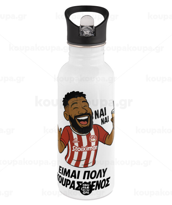 Ροντινέι, "ΠΟΛΥ ΚΟΥΡΑΣΜΕΝΟΣ", White water bottle with straw, stainless steel 600ml