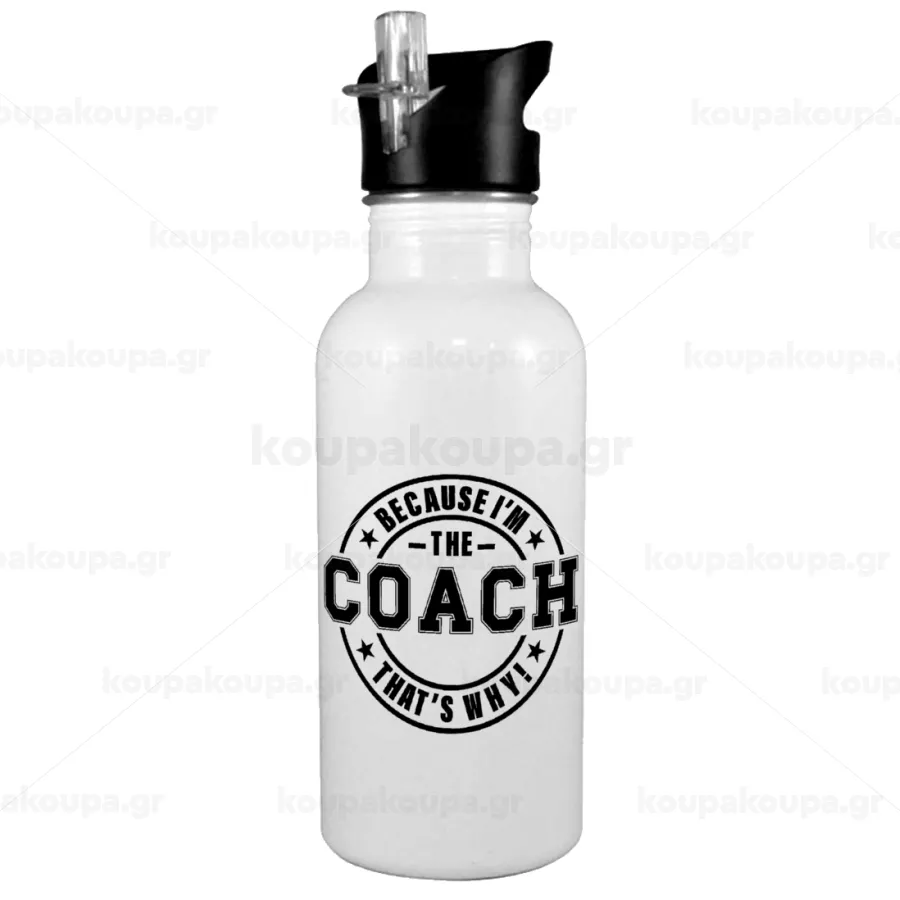 Because i'm the Coach, White water bottle with straw, stainless steel 600ml