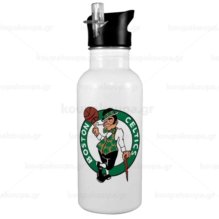 Boston Celtics, White water bottle with straw, stainless steel 600ml