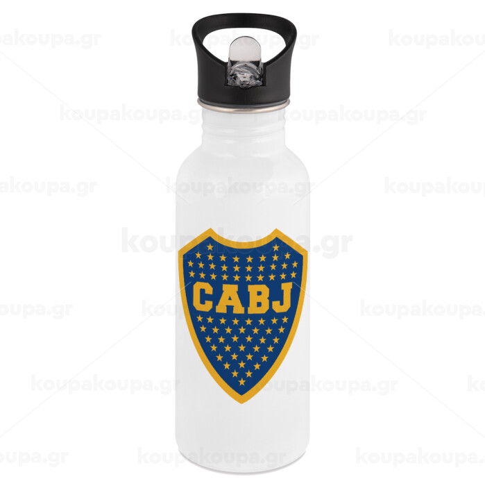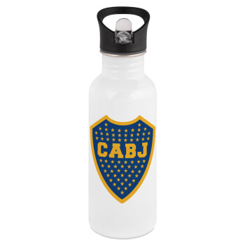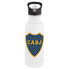 Club Atlético Boca Juniors, White water bottle with straw, stainless steel 600ml