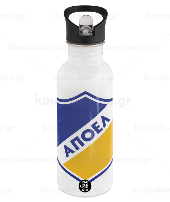 FC ΑΠΟΕΛ Λευκωσίας, White water bottle with straw, stainless steel 600ml