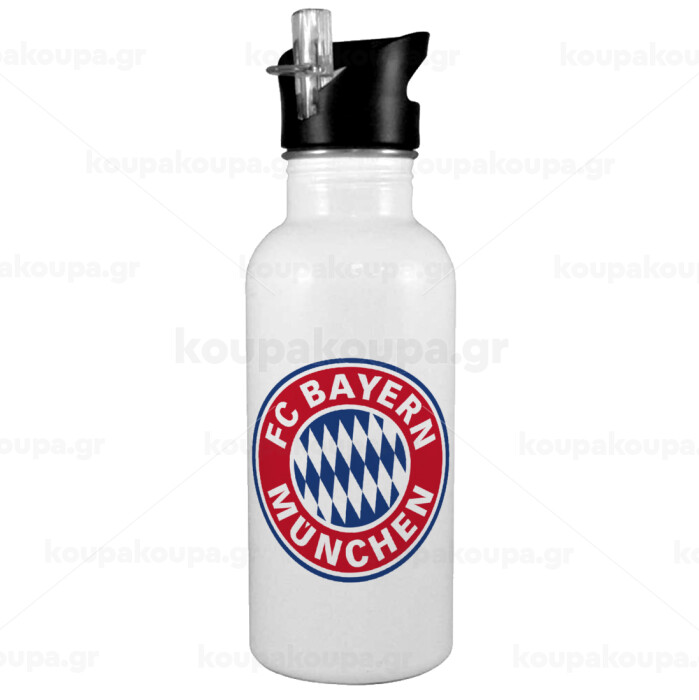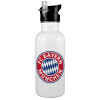 FC Bayern Munich, White water bottle with straw, stainless steel 600ml