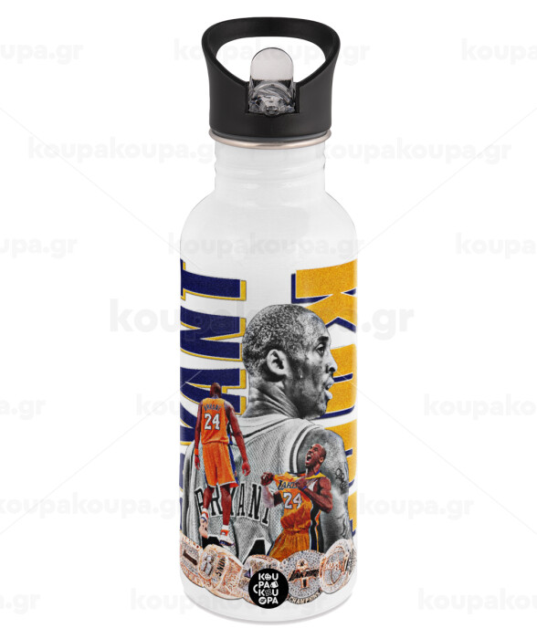 Kobe Bryant, White water bottle with straw, stainless steel 600ml