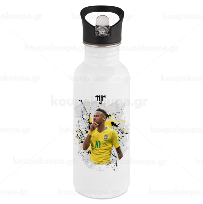 Neymar JR, White water bottle with straw, stainless steel 600ml