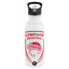 Olympiacos B.C., White water bottle with straw, stainless steel 600ml