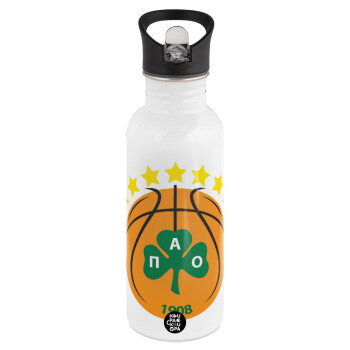 PAO BC, White water bottle with straw, stainless steel 600ml