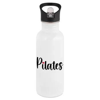 Pilates love, White water bottle with straw, stainless steel 600ml