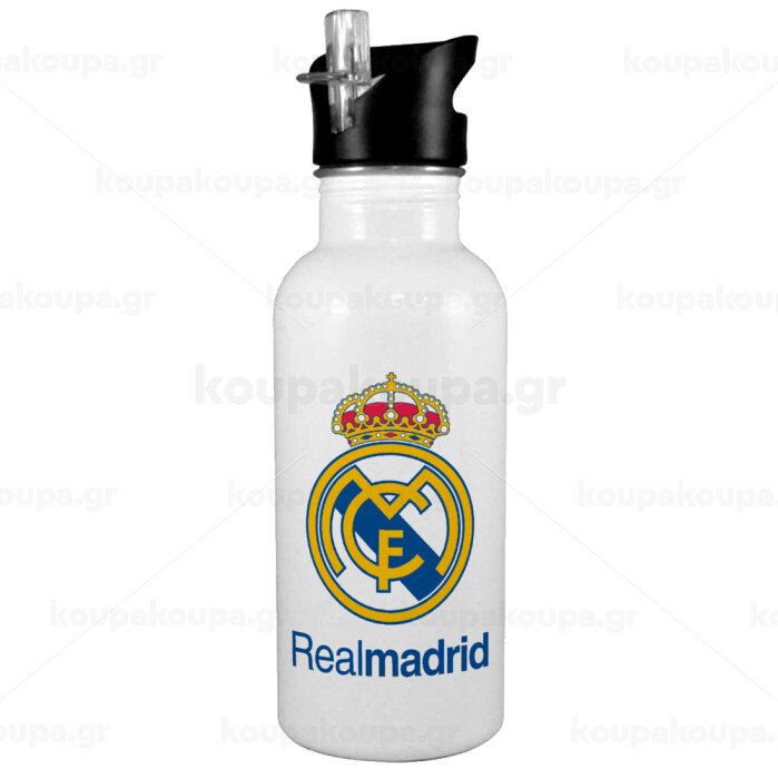 Real Madrid CF, White water bottle with straw, stainless steel 600ml