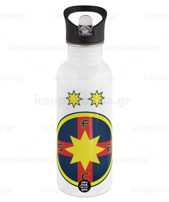 FC Steaua Bucuresti (FCSB), White water bottle with straw, stainless steel 600ml