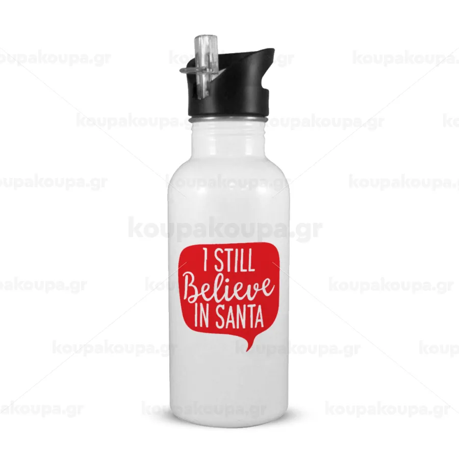 Ι still believe in santa, White water bottle with straw, stainless steel 600ml
