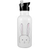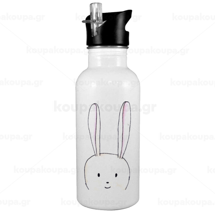 Ο λαγός του πάσχα, White water bottle with straw, stainless steel 600ml