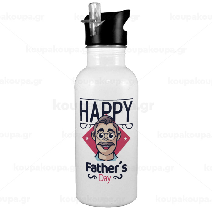 Για την γιορτή του μπαμπά!, White water bottle with straw, stainless steel 600ml