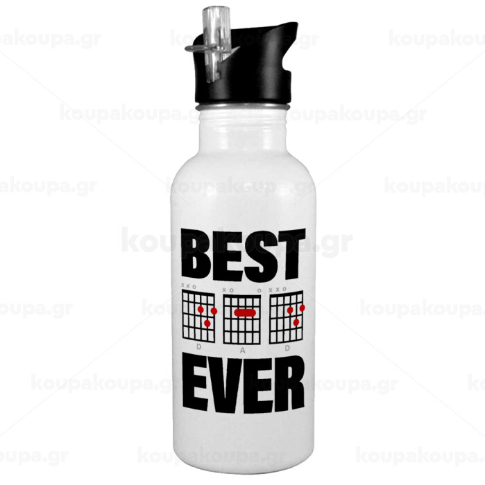 Best DAD Ever guitar chords, White water bottle with straw, stainless steel 600ml