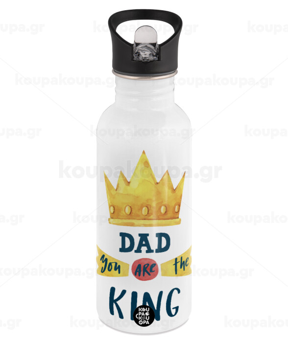 Dad you are the King, White water bottle with straw, stainless steel 600ml