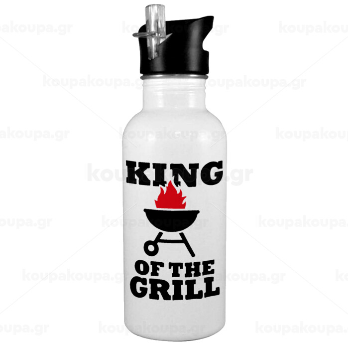 KING of the Grill, White water bottle with straw, stainless steel 600ml