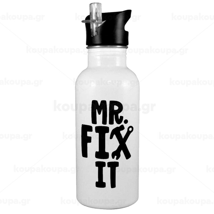 Mr fix it, White water bottle with straw, stainless steel 600ml