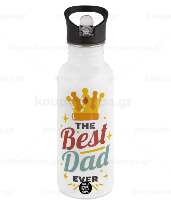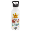The Best DAD ever, White water bottle with straw, stainless steel 600ml