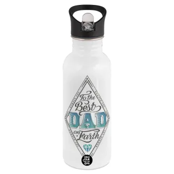 To the best DAD on earth, White water bottle with straw, stainless steel 600ml