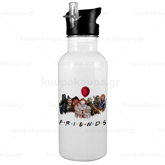 Halloween Friends, White water bottle with straw, stainless steel 600ml