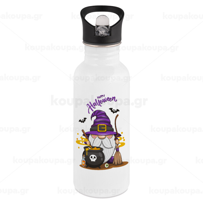 Happy Halloween (Χαλοουίν), White water bottle with straw, stainless steel 600ml
