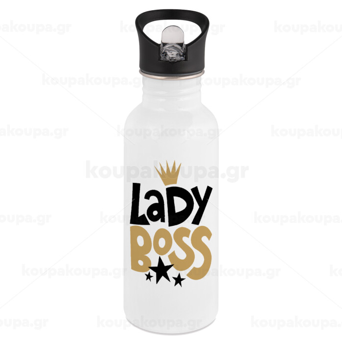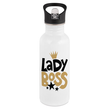 Lady Boss, White water bottle with straw, stainless steel 600ml