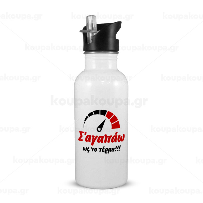 Σ΄ αγαπώ ως το τέρμα!!!, White water bottle with straw, stainless steel 600ml