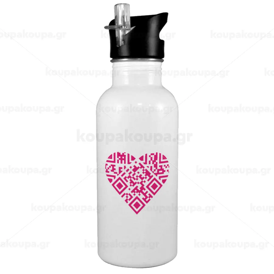 Heart hidden MSG, try me!!!, White water bottle with straw, stainless steel 600ml