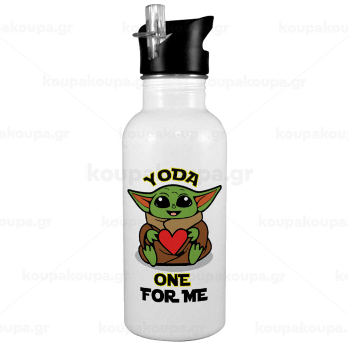 Yoda, one for me , White water bottle with straw, stainless steel 600ml