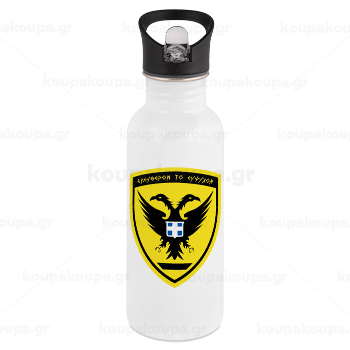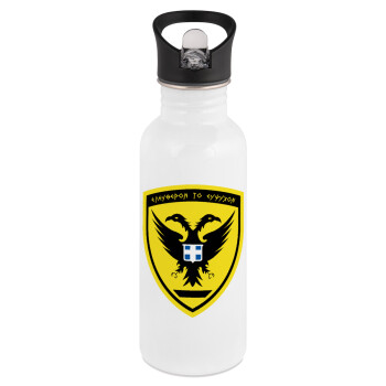 Ελληνικός Στρατός, White water bottle with straw, stainless steel 600ml
