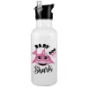 Baby Shark (girl), White water bottle with straw, stainless steel 600ml