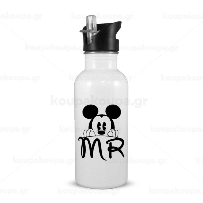 Mikey Mr, White water bottle with straw, stainless steel 600ml