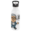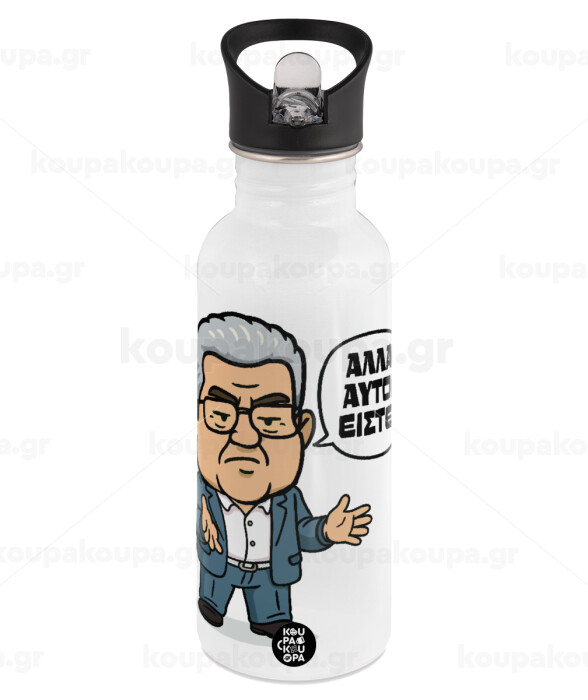 Κουτσούμπας, "Αλλά αυτοί είστε!", White water bottle with straw, stainless steel 600ml