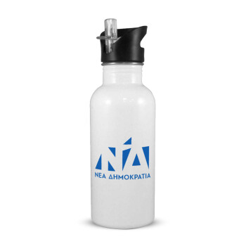 Νέα δημοκρατία, White water bottle with straw, stainless steel 600ml