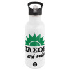 ΠΑΣΟΚ από κούνια, White water bottle with straw, stainless steel 600ml