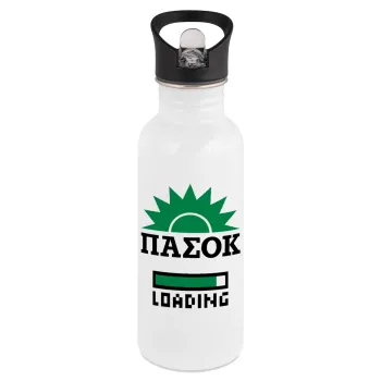 PASOK Loading, White water bottle with straw, stainless steel 600ml