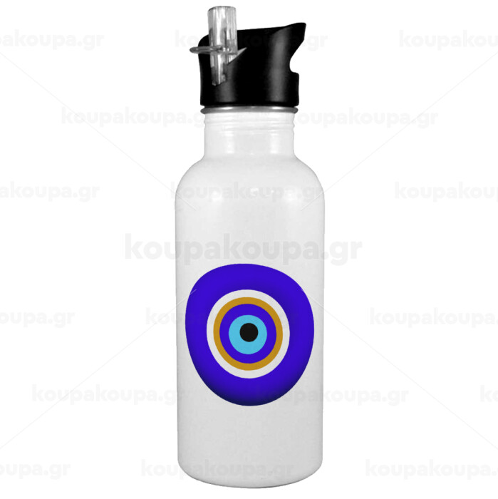 Το μάτι, White water bottle with straw, stainless steel 600ml